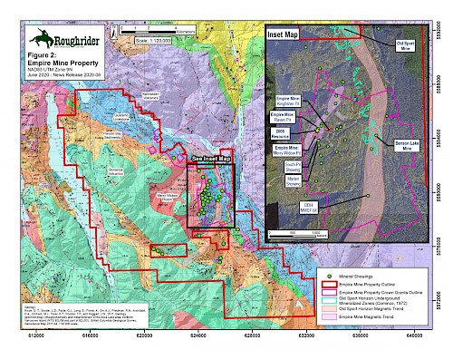 Roughrider's CEO, Adam Travis, comments: "Based on our technical review and my personal field examination earlier this month, I am excited about the opportunity of rapidly advancing the multiple new and historic prospects on this exceptional property. I would like to commend the team at Mirva led by Denis Pelletier for consolidating the area over the last five years as well as continuing to acquire and compile the extensive historical data.